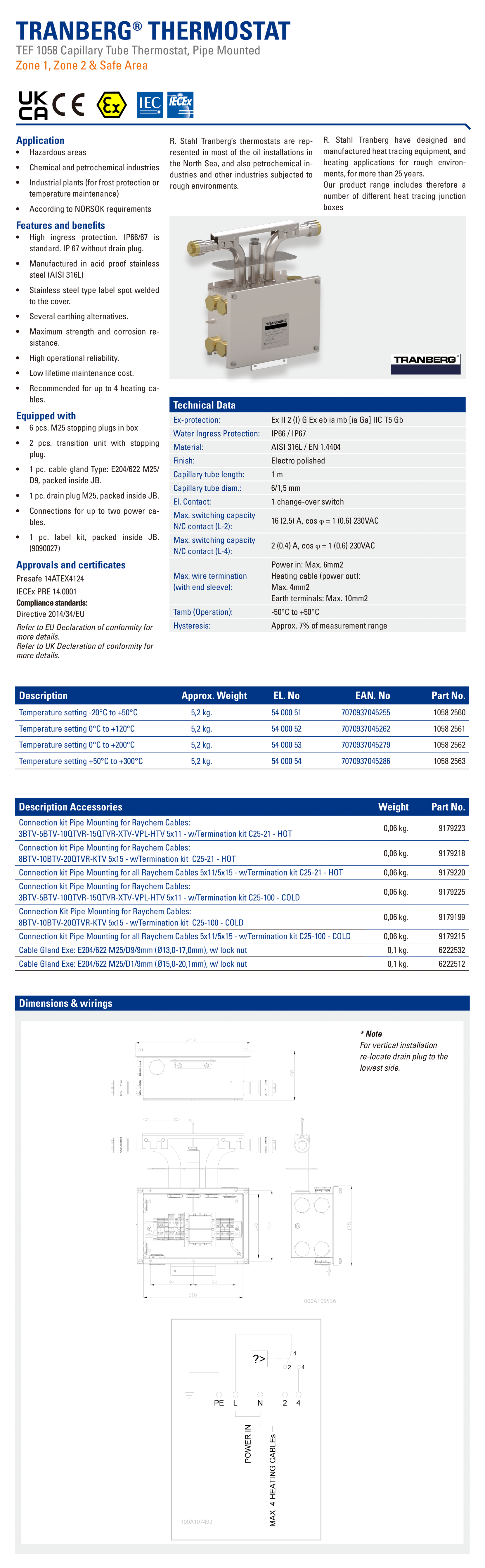 【防爆1&2區可用】管裝毛細管恒溫器 | |||